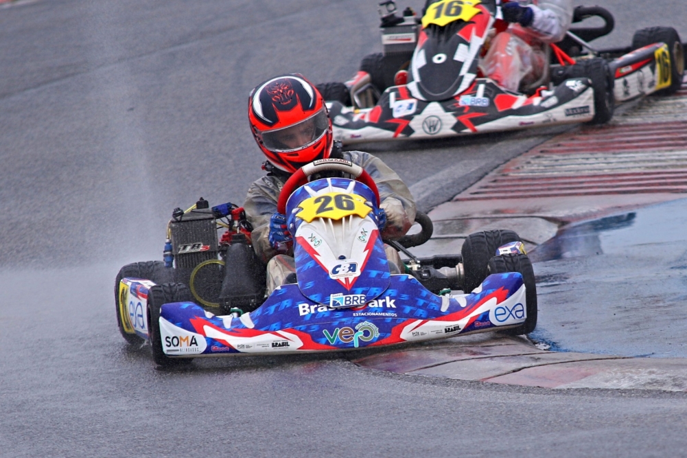 evento. A pista molhada aumentava o risco de erros, mas Dudu mostrou precisão e